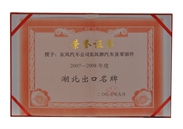 授予:东风汽车公司东风牌汽车及零部件2007-2008年度 湖北出口名牌