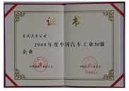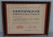 中国汽车工业三十强证书