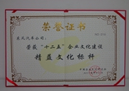 湖北省文明办、湖北省国有资产管理委员会、湖北省环保厅、湖北省总工会、湖北省工商业联合会、湖北日报、湖北省职工思想政治工作研究会,授予湖北省十大优秀企业文化品牌